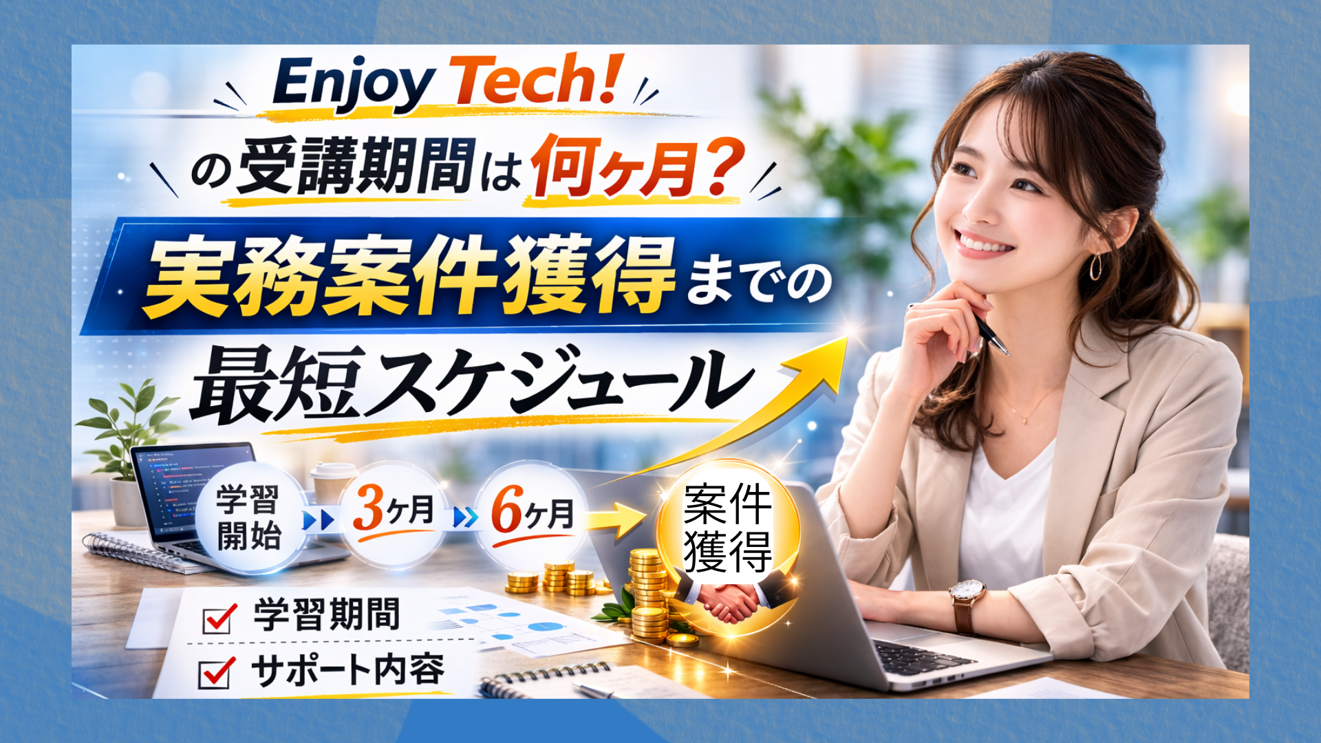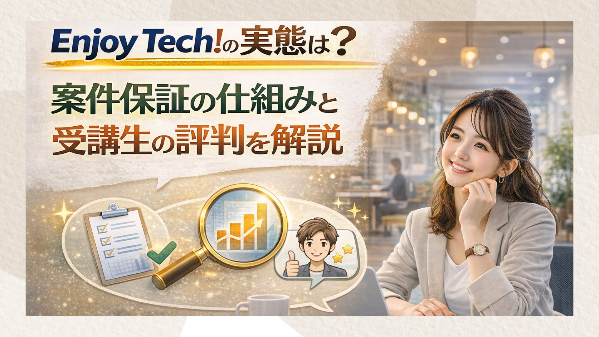 本記事では、Enjoy Tech!の申込み前に必ずチェックしておくべき案件保証の具体的な条件や、未経験から初報酬を手にするまでの最短ルートを徹底解説します。