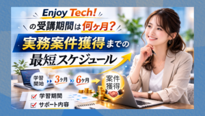 Enjoy Tech! 口コミでは、柔軟な学習計画についても触れられていますが、同時にプロの現場に飛び込むことへの真剣さも求められます。