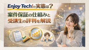 Enjoy Tech!であれば、受講中に「プロが認めた実務実績」と「報酬」の両方が手に入るため、精神的な余裕を持ちながらプロとしてのキャリアをスタートさせることが可能です。